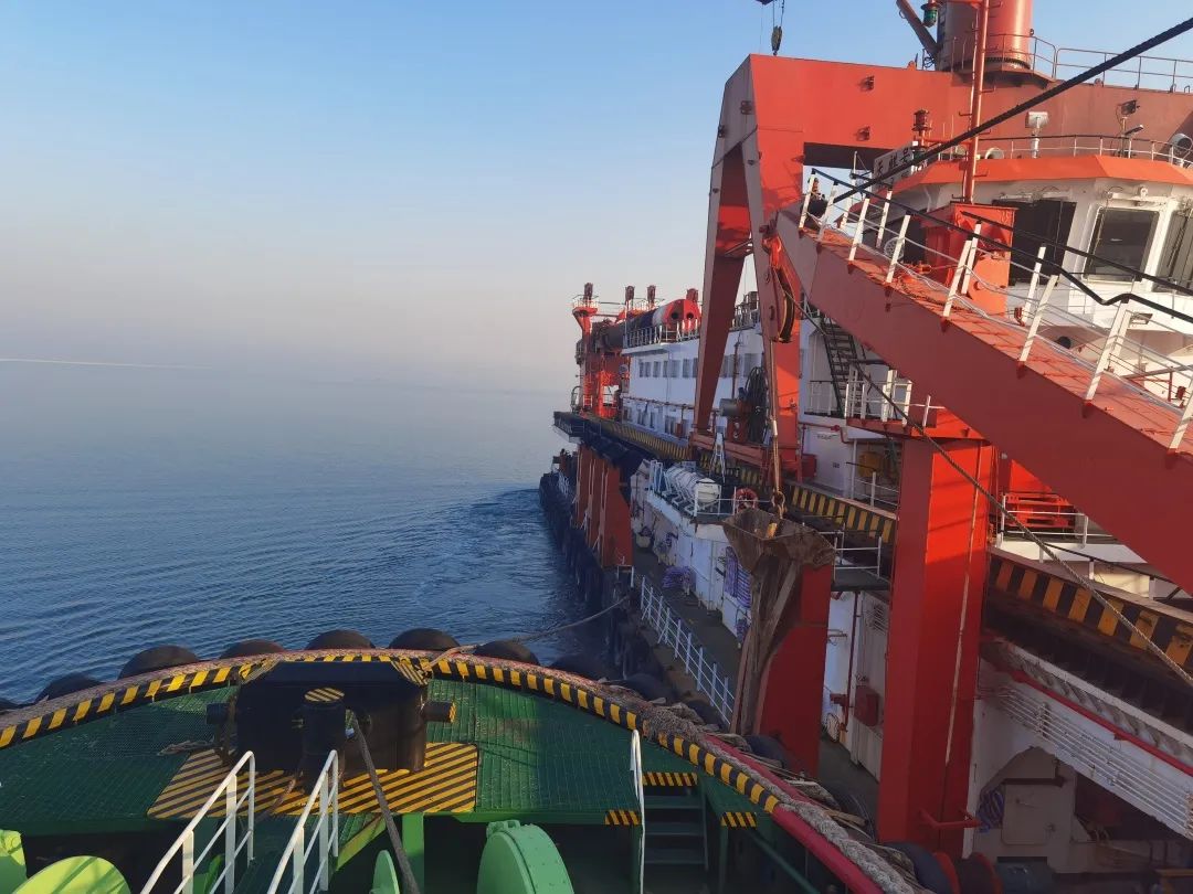 在高沙岭港区金岸重工码头,“津港轮35”正拖带着“天麒”号挖机船前往大沽口锚地。右舷处4名船员喊着高亢的口号,步调一致地进行着带缆作业,上百斤缆绳如穿针引线般顺利通过两船,牢牢固定在缆桩上,为“旁拖”挖泥船传递动力和方向;甲板上,现场指挥的“津港轮35”船长迎着刺骨的海风,一次次将现场指令通过高频传递,守好每一个安全环节;驾驶台,值班驾驶员专注于操纵,微妙的手部变化,带来了精准的反馈,保持安全的船位,让海上航行变得更加顺利;机舱里,阵阵轰鸣袭来,值班轮机员每隔二十分钟就巡视一次,确保主机功率正常、各处油路通畅,为驾驶台“快车”“慢车”指令提供坚实设备保障。在这场技巧与力量的海上博弈中,“津港轮35”全员各司其职、有条不紊,拖带“天麒”号挖泥船避让高沙岭港浅水区,驶过临港航道,历经五小时后安全抵达了目的地。长期以来,轮驳公司积极做好集装箱驳运、海上拖带等业务,以饱满热情、优质服务践行“坚持、自信、创新、和谐”文化内涵和“迎来送往伴一段航程、保驾护航守你我平安”企业使命,全力保障着港内进出港船舶的安全有序。