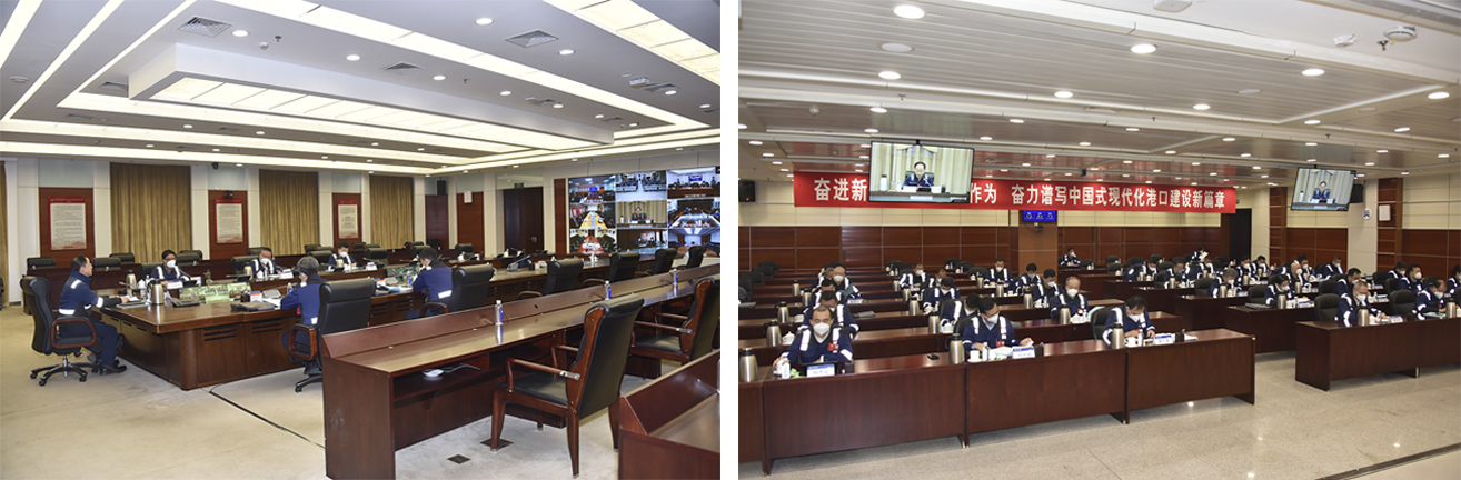 集团公司党委书记、董事长褚斌作题为《奋进新征程,展现新作为,奋力谱写建设中国式现代化港口新篇章》的讲话,党委副书记、总裁焦广军作题为《提升服务,深化改革,全面奋进世界一流港口和一流企业建设新征程》的工作报告,党委副书记、工会主席刘华勇主持会议,集团公司领导班子出席会议。
